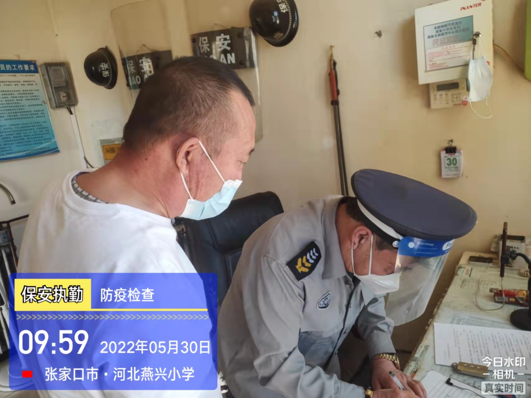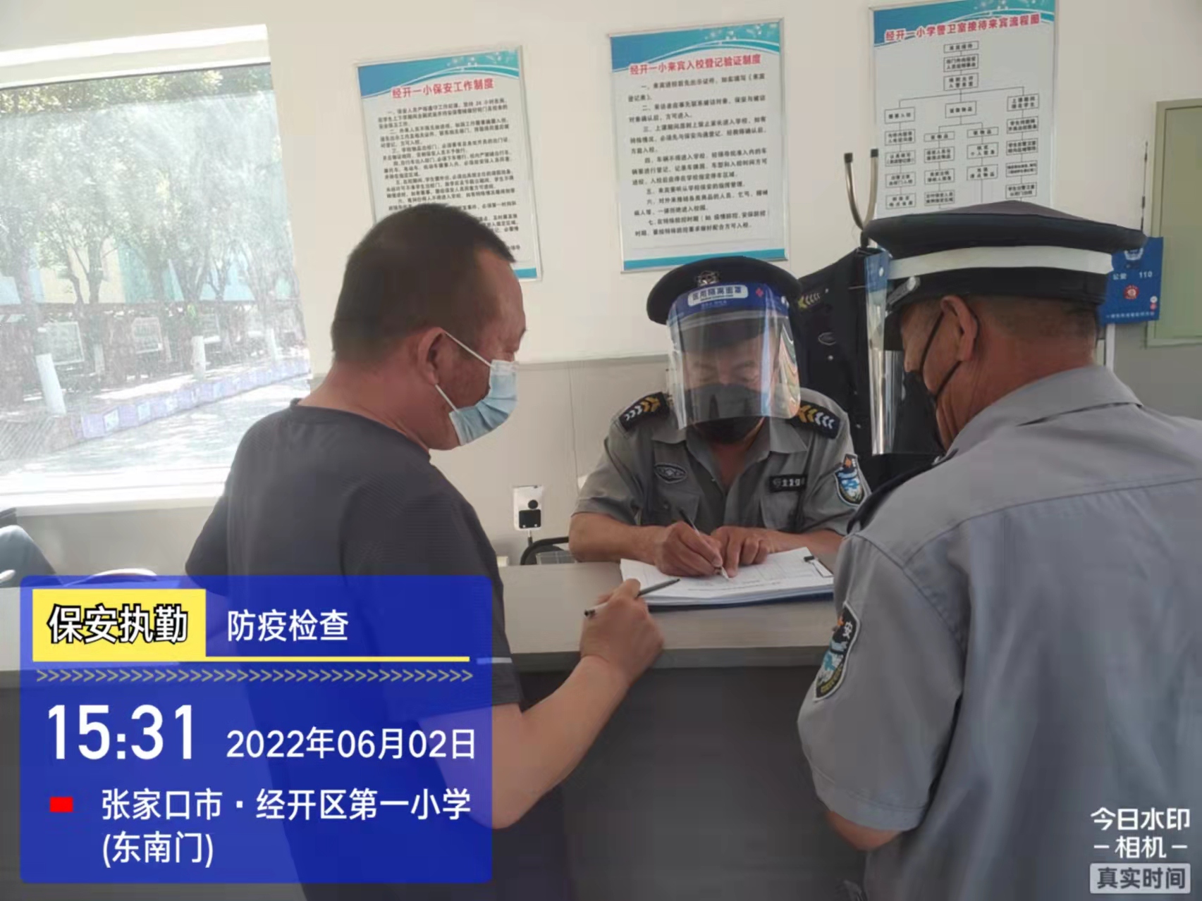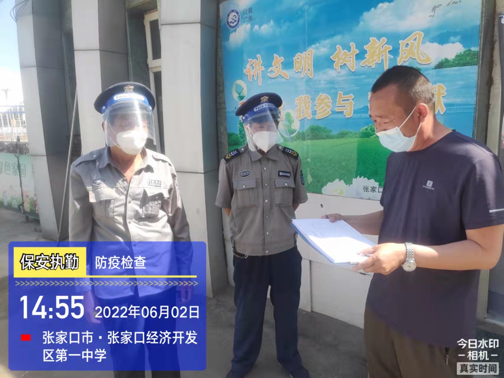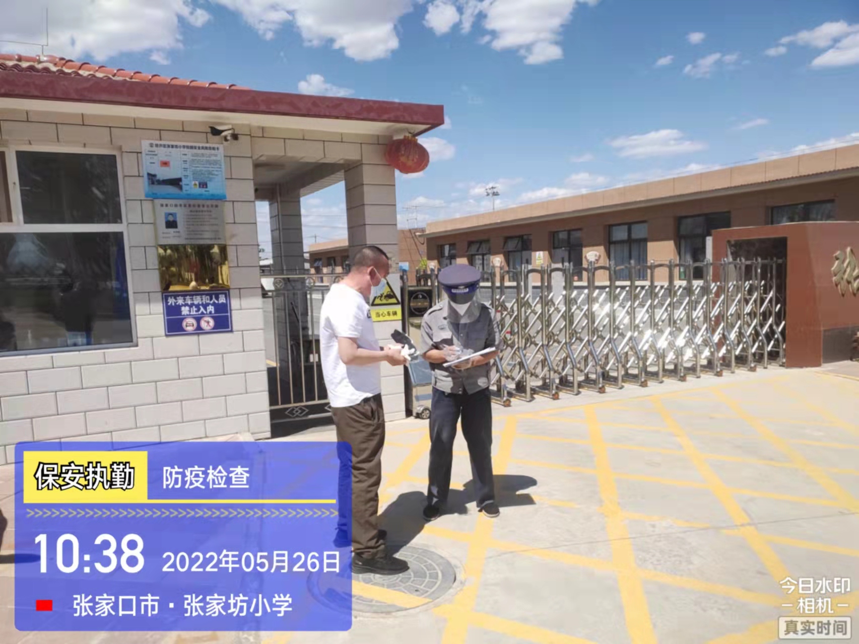 會(huì)后,我公司迅速召開(kāi)“疫情期間學(xué)校門衛(wèi)安全防控工作要求”的會(huì)議,制定了校園安全防疫規(guī)定:疫情防控期間,校園保安隊(duì)員必須穿制服,規(guī)范佩戴“三件套”(防護(hù)隔離面罩、N95口罩、一次性PVC手套);進(jìn)出校園的師生必須測(cè)量體溫,外來(lái)人員需登記、測(cè)溫、掃碼(幸福張家口,呈綠碼)、且持7日內(nèi)核酸陰性檢測(cè)結(jié)果;保安室需保持干凈整潔,物品擺放有序,勤開(kāi)窗通風(fēng),定期噴灑消毒藥水。為此,公司特成立校園防疫檢查小組,由副經(jīng)理帶隊(duì),協(xié)同主管大隊(duì)長(zhǎng)對(duì)經(jīng)開(kāi)區(qū)所有中小學(xué)校安保崗位進(jìn)行防疫工作檢查,檢查期間,發(fā)現(xiàn)問(wèn)題,現(xiàn)場(chǎng)處理,并及時(shí)與校方領(lǐng)導(dǎo)溝通,杜絕同樣問(wèn)題再次出現(xiàn),確保校園防疫安保工作萬(wàn)無(wú)一失,為各校師生鑄就一道安全防線!
