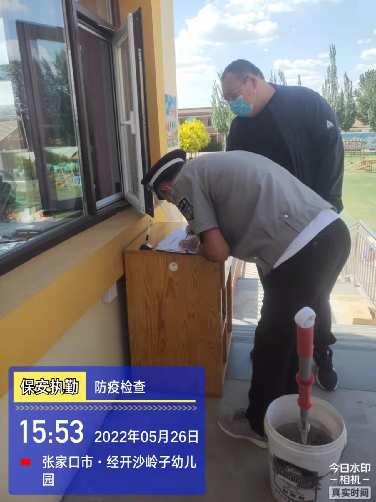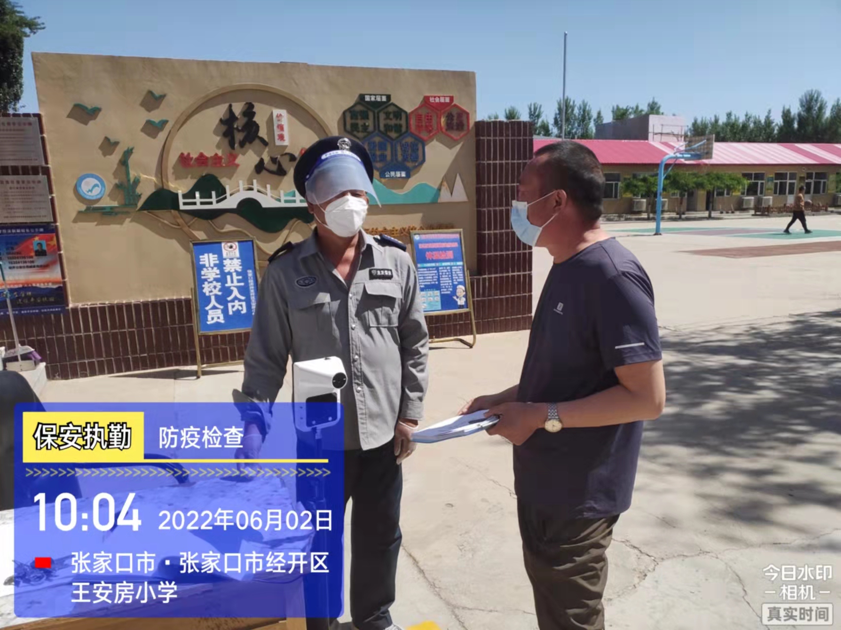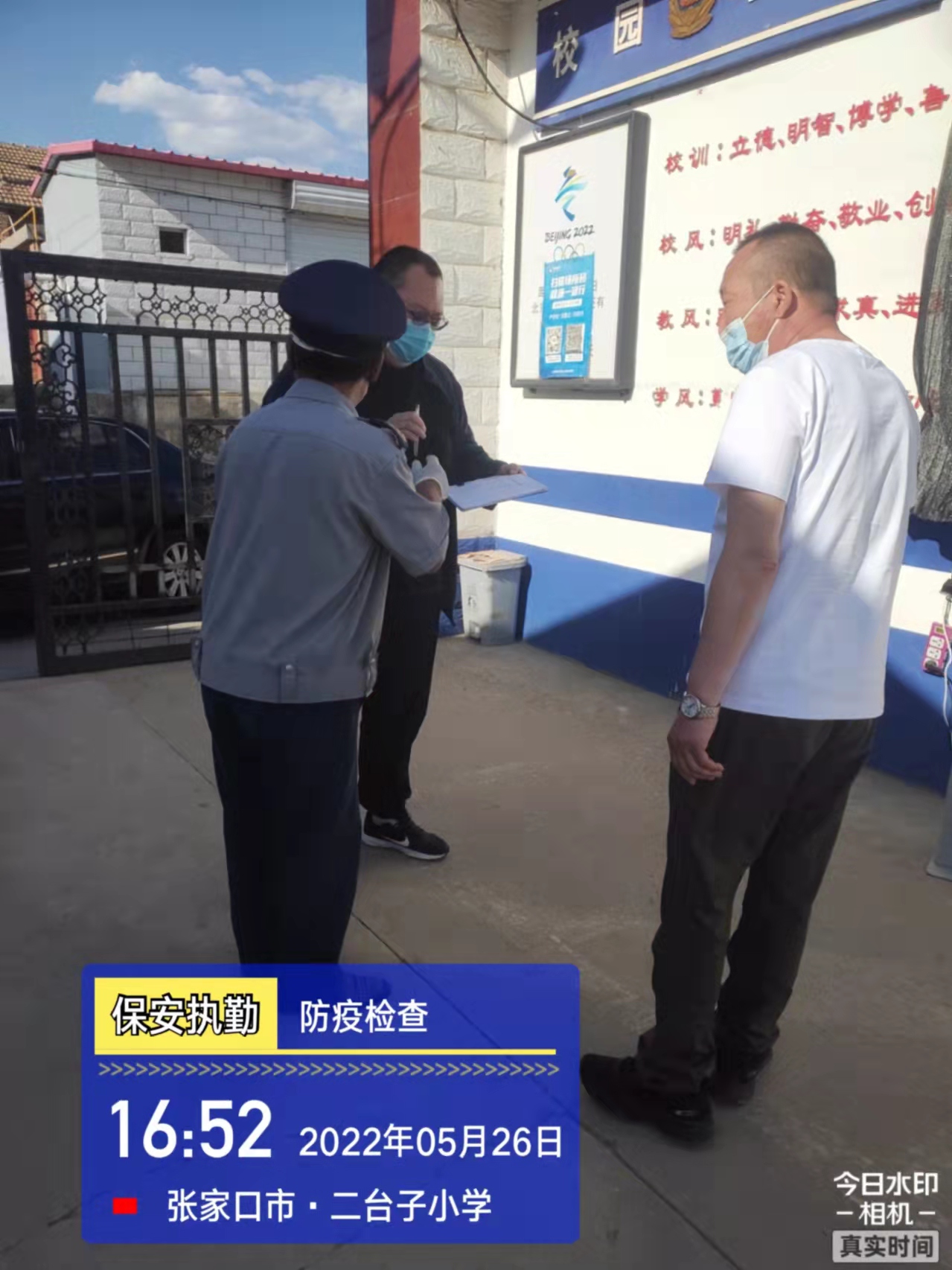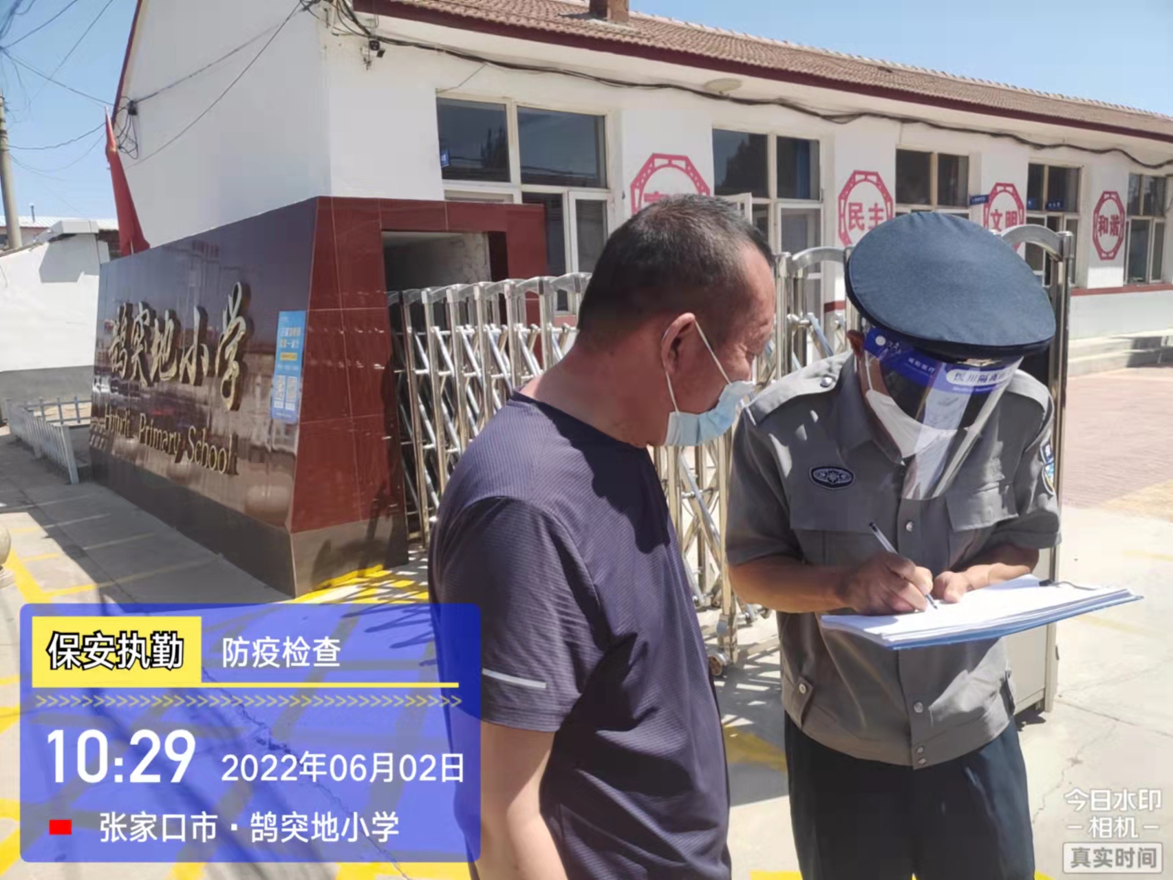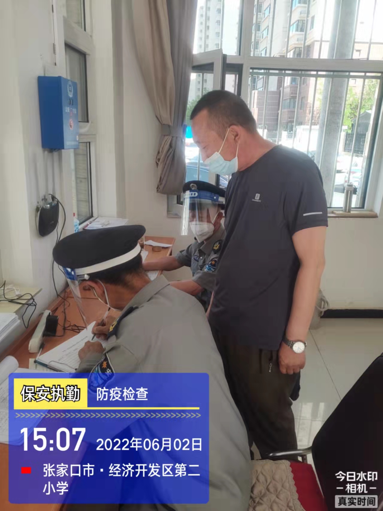 會(huì)后,我公司迅速召開(kāi)“疫情期間學(xué)校門衛(wèi)安全防控工作要求”的會(huì)議,制定了校園安全防疫規(guī)定:疫情防控期間,校園保安隊(duì)員必須穿制服,規(guī)范佩戴“三件套”(防護(hù)隔離面罩、N95口罩、一次性PVC手套);進(jìn)出校園的師生必須測(cè)量體溫,外來(lái)人員需登記、測(cè)溫、掃碼(幸福張家口,呈綠碼)、且持7日內(nèi)核酸陰性檢測(cè)結(jié)果;保安室需保持干凈整潔,物品擺放有序,勤開(kāi)窗通風(fēng),定期噴灑消毒藥水。為此,公司特成立校園防疫檢查小組,由副經(jīng)理帶隊(duì),協(xié)同主管大隊(duì)長(zhǎng)對(duì)經(jīng)開(kāi)區(qū)所有中小學(xué)校安保崗位進(jìn)行防疫工作檢查,檢查期間,發(fā)現(xiàn)問(wèn)題,現(xiàn)場(chǎng)處理,并及時(shí)與校方領(lǐng)導(dǎo)溝通,杜絕同樣問(wèn)題再次出現(xiàn),確保校園防疫安保工作萬(wàn)無(wú)一失,為各校師生鑄就一道安全防線!